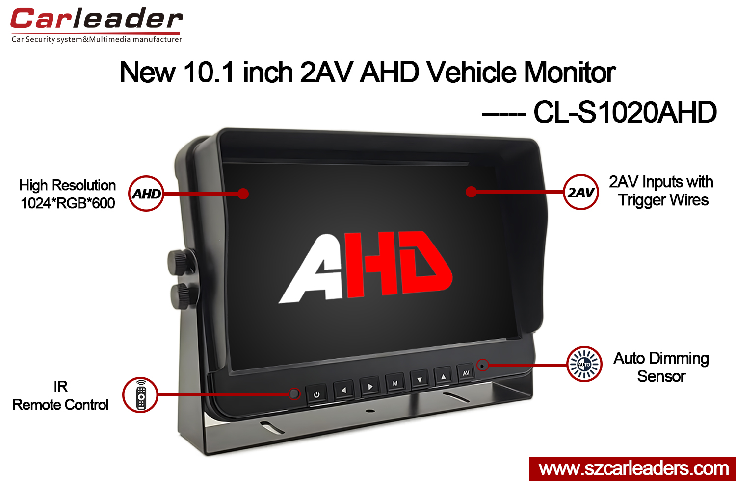 Carleaderni igberaga lati ṣafihan wa fun ọ 10.1 inch 2CH AHD Awọn titẹ sii Atẹle Afẹyinti Ọkọ.