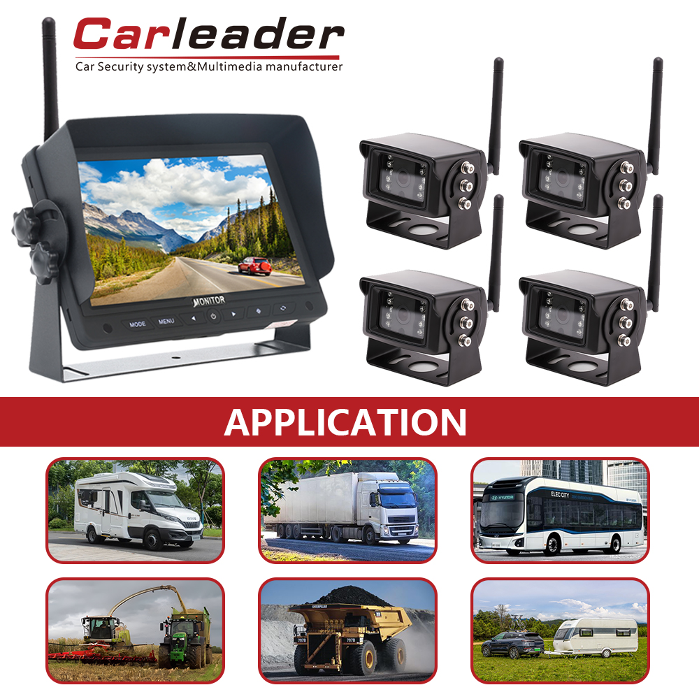 Iwapọ: Carleader 7 Inch 2.4G Digital Alailowaya 2CH Pipin Eto Kamẹra Ifihan le ṣee lo lori oriṣiriṣi awọn ọkọ ayọkẹlẹ, pẹlu RVs, awọn ọkọ akero, awọn oko nla, awọn tirela, ati bẹbẹ lọ.