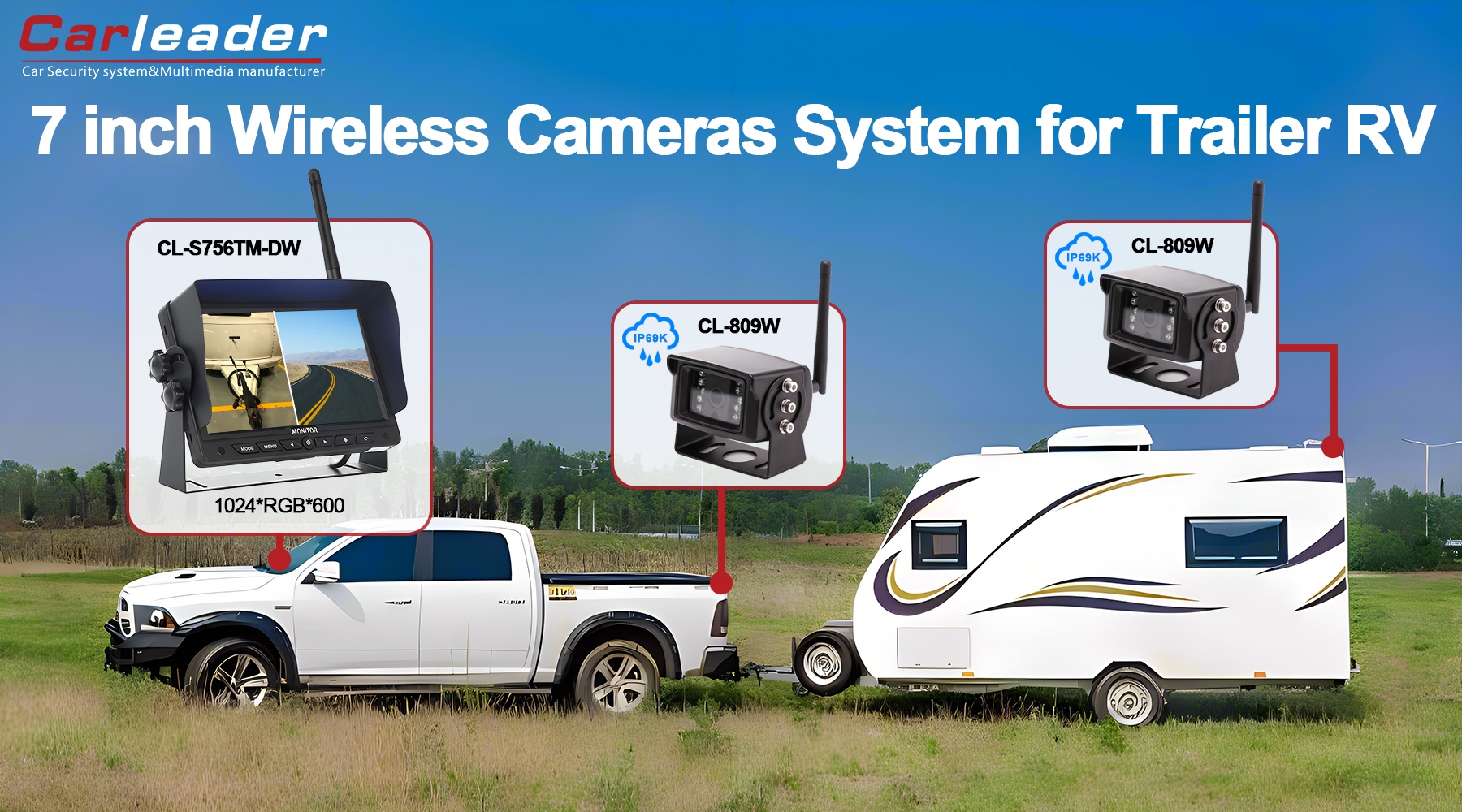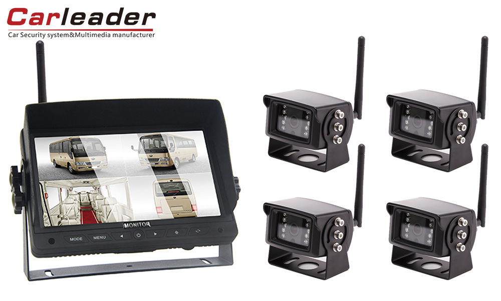 Carleader7 inch 2.4G Digital Alailowaya 2CH Pipin Ifihan kamẹra System, Eto ibojuwo alailowaya ti o ga julọ pẹlu atilẹyin 2 iwo ifihan slipt, paring pẹlu kamẹra alailowaya 2pcs. 7 inch oni-nọmba nronu, 16: 9 aworan ratio, 1024 x 600 (RGB) ipinnu, pese iwakọ ga wípé ni iriri awakọ.