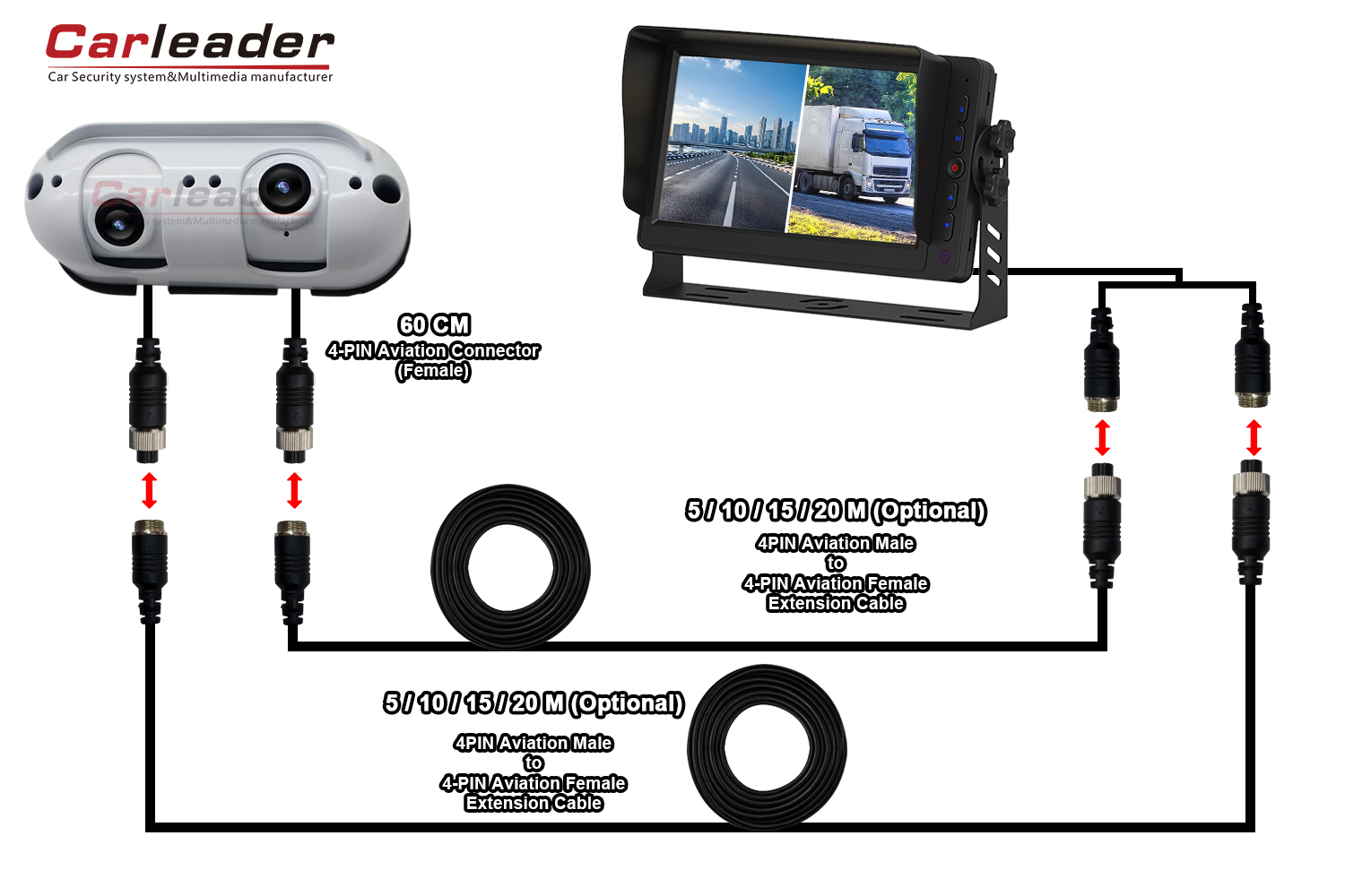 Carleaderyoo funni ni ojutu onirin oriṣiriṣi meji fun AHD Starlight Dual Lens Heavy Duty Rear View Kamẹra, lati baamu iwulo wiwọ oriṣiriṣi: