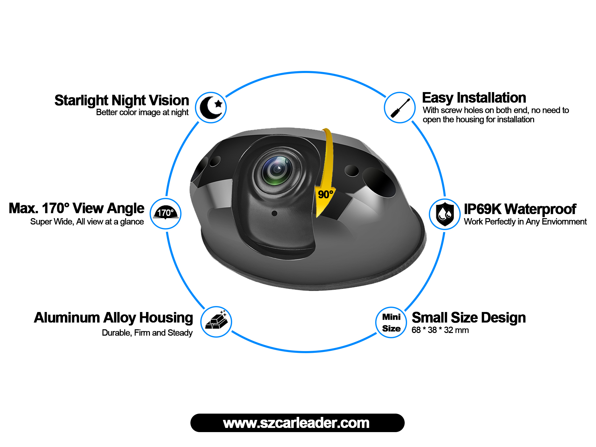 A ni igberaga lati ṣafihan fun ọ, Carleader AHD 170 Degree Wide Wide Angle Mabomire Heavy Duty Afẹyinti kamẹra.