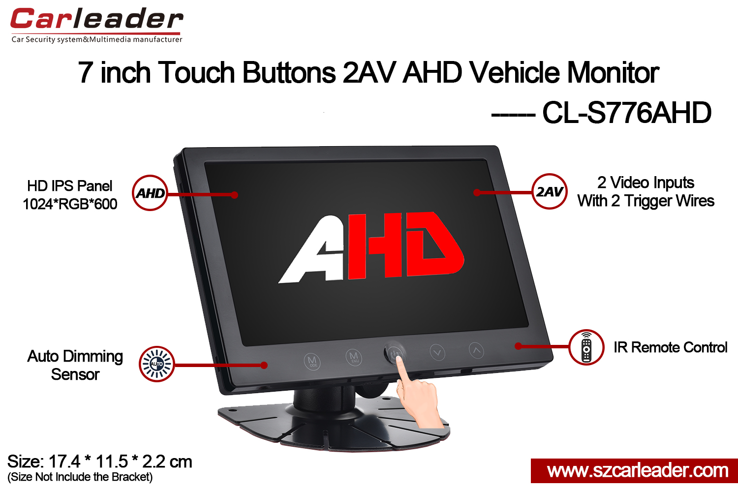 Carleader7 inch IPS iboju 2CH AHD Input Fọwọkan Awọn bọtini Atẹle Eru Ọkọapẹrẹ fun Oko, aabo, tona, ati ise lilo, odaapọ agbara, irọrun, ati iṣẹ ifihan ti o ga julọ ninu apo kan ti o gbẹkẹle.