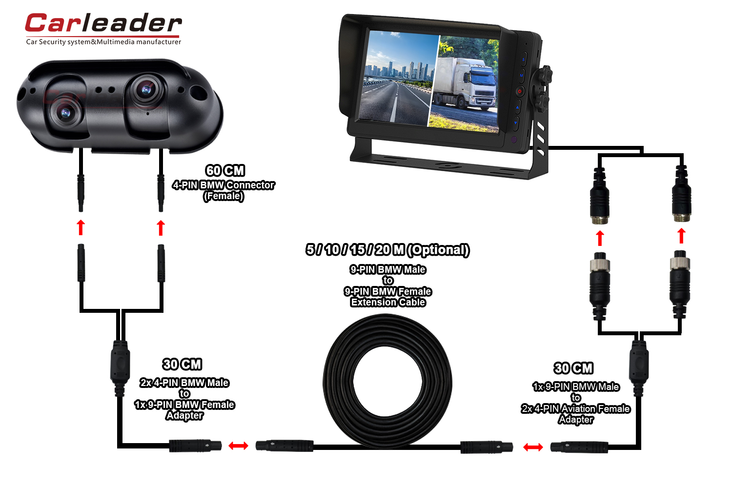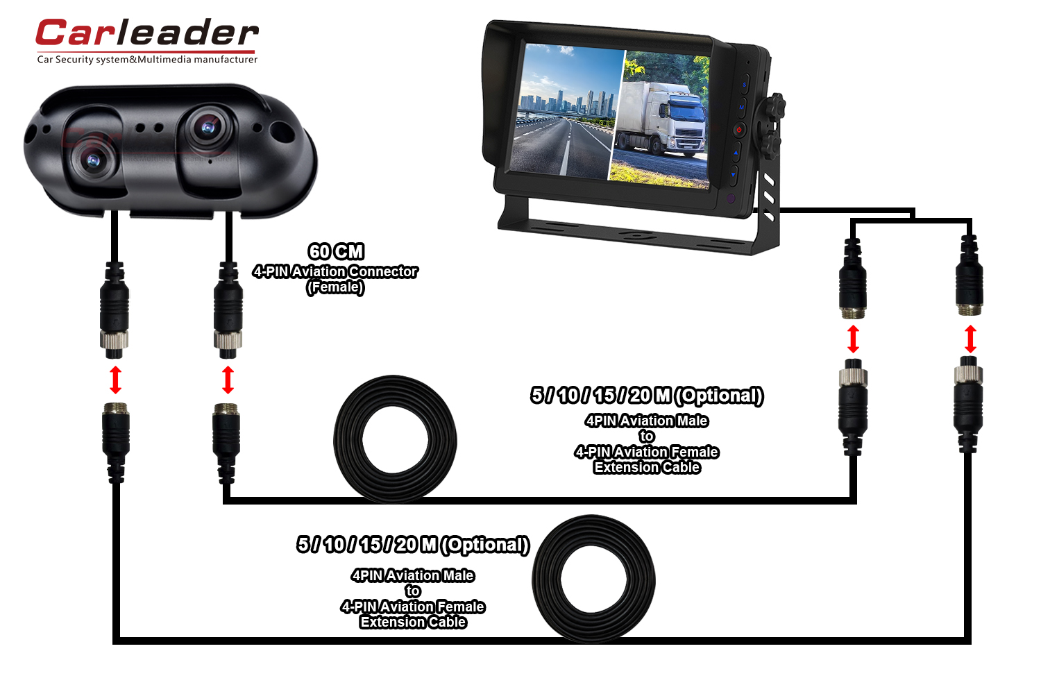 1. Starlight AHD Dual Lens Heavy Duty Reversing Camera pẹlu CVBS / AHD 720P / AHD 1080P ipinnu fun aṣayan.